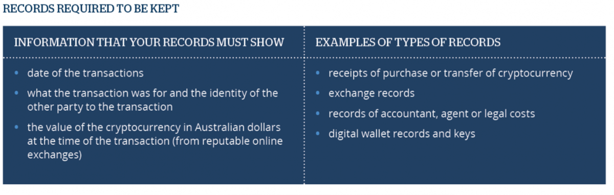 Taxpayers dealing with cryptocurrency need to keep the records laid out in the table below.